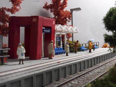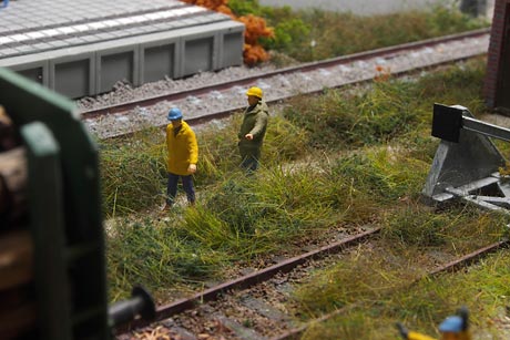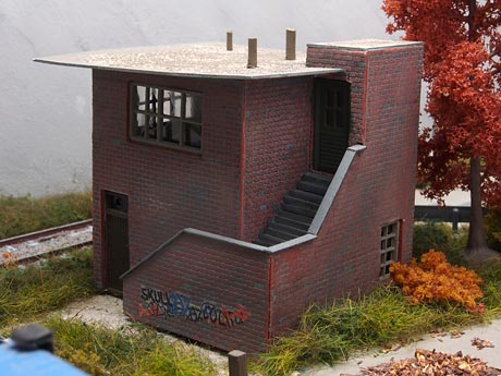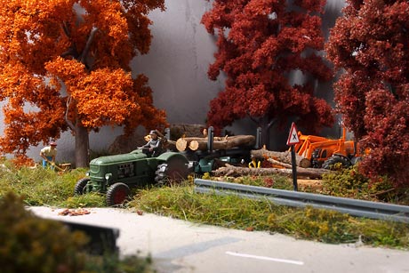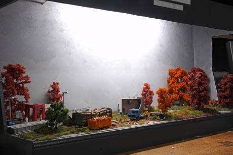 Ik wilde graag alles zelf maken en dan met name objecten die niet standaard verkrijgbaar zijn in de winkel. Zo heeft de rails zelfgemaakte betonnen duo-blok dwarsliggers en zijn het seinhuis, het perron, de overweg, de wagon en de vrachtwagen zelf gebouwd. Verder wilde ik dat het zich zou afspelen in de herfst en dus zijn alle bomen in herfsttinten gekleurd. In totaal heb ik er een half jaar over gedaan om het diorama te bouwen.