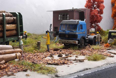 Ik heb het diorama gebouwd voor de dioramawedstrijd van Beneluxspoor op Eurospoor 2012. De enige eisen die aan het diorama werden gesteld, waren dat het 100 cm breed en 30 cm diep moest zijn en dat er rails op moest liggen. Als inspiratie heb ik een foto gebruikt van een klein Duits station waar een vrachtwagen boomstammen overlaadt op een wagon, maar dit heb ik niet exact nagebouwd.