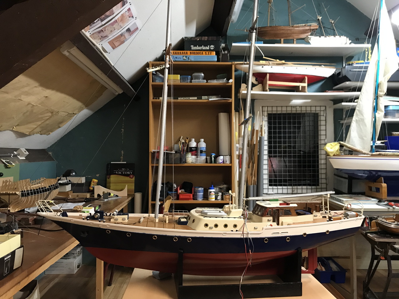 Het model was al eerder van een een simpele schoenertuigage voorzien, om het als show model te presenteren. Echter waren wij niet tevreden over het resultaat, en is er besloten om met meerdere leden het model op een hoger peil te brengen.