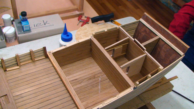 De visverwerkingsruimte, (dekhuis) boven de visopslag blijft afneembaar, en wordt als los onderdeel gebouwd. Dit dekhuis wordt van bamboe gemaakt. De moeilijkheden die dit geeft worden later behandeld. Ook is er begonnen met het maken van de luiken die op het dek moeten komen. Tussen deze luiken en de verschansing komen straks losse planken te liggen (laningen), zodat er een dek ontstaat zonder obstakels voor de visnetten en bemanning.